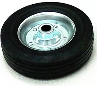 Los wiel voor een neuswiel, de afmeting is 200x60 mm. De velg is van staal en de band is massief rubber .